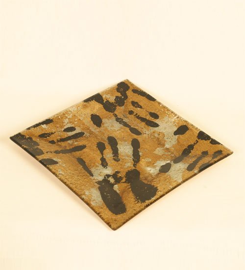 Квадратная тарелка размером 25 сантиметров имеет очень необычный дизайн, точнее расцветку. Довольно странное на первый взгляд сочетание цветов отлично дополняют «отпечатки» человеческих ладоней, нанесенные на поверхность. Такая нестандартная тарелка сможет даже самый простой салат сделать не таким, как всегда. Вкус блюда начинается с его внешнего вида, а на такой тарелке внешний вид будет что надо.