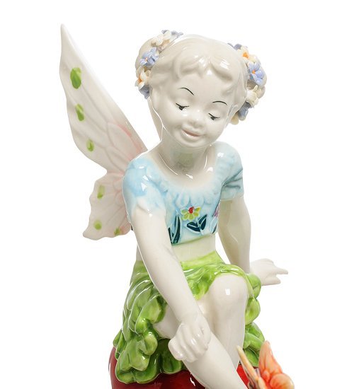 Кроме того, юная фея сама по себе представляет истинное великолепие. Ее умилительное выражение лица, тончайшая проработка всех мелких деталей, скрупулезная работа мастера – превращает фигурку в самое настоящее произведение искусства. Оригинальная и яркая расцветка, окружающие фею предметы создадут удивительную атмосферу добра и гармонии с природой и миром.