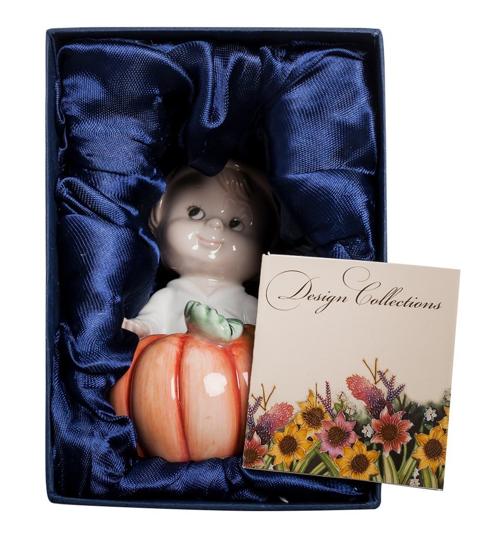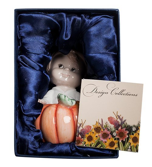 Хэллоуин – праздник для всех детей и взрослых, народное веселье, основанное на переодеваниях, шутливых страшилках и легендах. Каждый ребенок ждет этого праздника, чтобы переодеться в красивый костюм любимого героя и хоть на один вечер стать неузнаваемым и устрашающим воином. Фарфоровый сувенир Хэллоуин изображает мальчика в пиратской одежде, сидящего у тыквы и показывающего что-то в ладони. Очевидно, что это монетки или конфета, которыми угощают детей во время праздника. Чудесное милое личико ребенка будет всегда поднимать вам настроение и радовать глаз.