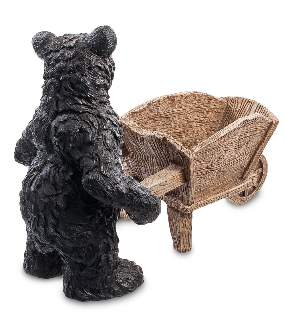 Например, кашпо «Медведь с тачкой» наверняка наполнит ваш дом благоприятной и радостной атмосферой. Мишка из этой композиции похож на сказочного героя. Животное везет деревянную тачку и ждет, когда вы украсите ее красивыми цветочными горшками.