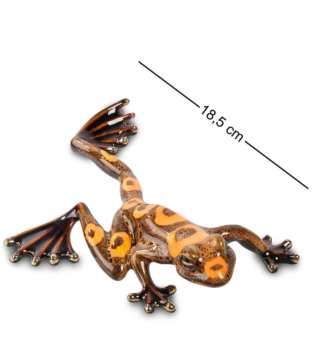 Фигурка «Лягушка» - достойное интерьерное украшение и оригинальный подарок к любому жизненному случаю. В этой статуэтке изображена уникальная экзотическая лягушка, тельце которой окрашено в оранжевый цвет. Согласно восточной легенде, оранжевые лягушки приносят своим обладателям счастье и наделяют их выдающимися талантами.