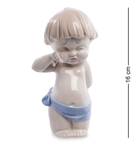 И вновь Павоне удивляют нас своей коллекцией фигурок-мальчиков. На этот раз плакса-малыш будет украшать вашу полку. Автор смог ярко изобразить эмоцию грусти, детской капризности. Мальчик опустил голову и тихонько заплакал, нахмуривая бровки и закрывая сильнее глазки. Одной рукой он вытирает со щеки слезы, а другую держит за спиной, при этом показывая свою вину. У малютки светло-русые волосы и голубое полотенце ниже животика. Такая фигурка станет любимым дополнением в коллекцию, отличным подарком молодой маме, учительнице, или возрастному психологу.