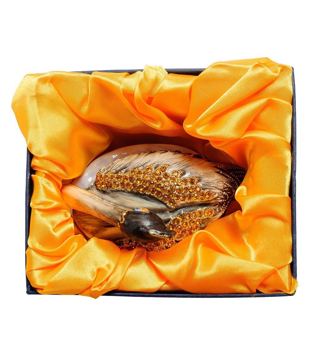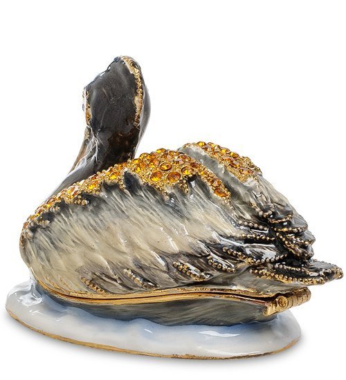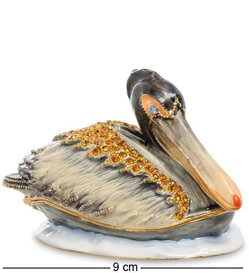 Если туловище пеликана открыть, оно откинется на петле и откроет свободное место внутри: это шкатулка, в которой хватит места только для тех украшений, которые вам предстоит надевать каждое утро. И бижутерия ваша в полном порядке будет, и туалетный столик этот роскошный, хоть и маленький пеликан украсит своим присутствием, не давая забыть о том, что пора собираться.