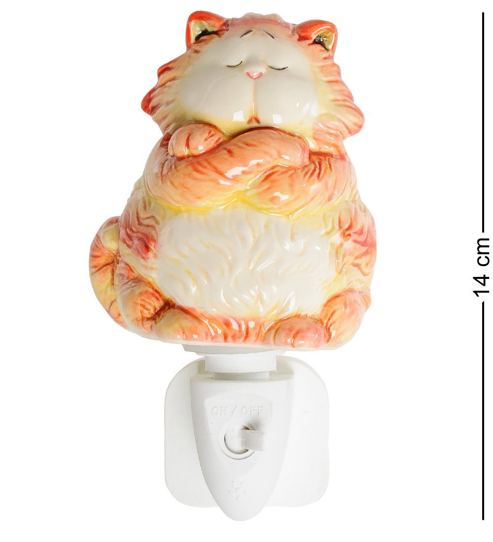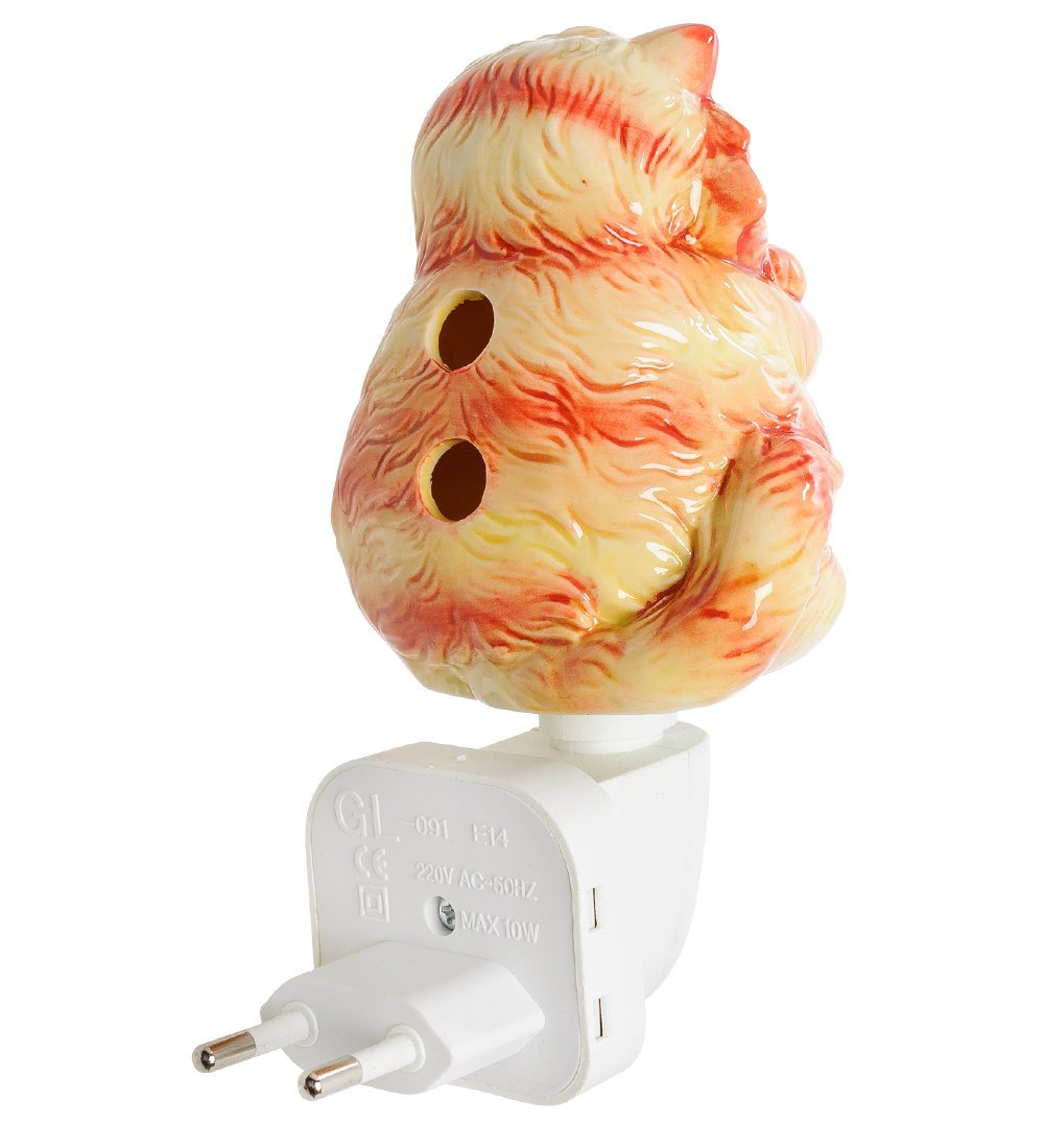Фарфоровый светильник в виде улыбающегося, жмурящегося от удовольствия толстого рыжего кота — очень уютная и милая деталь интерьера дома. Кот невероятно симпатичный и явно находится в прекрасном расположении духа — так и кажется, что он сейчас замурлычет. И даже если у вас нет настоящей кошки, то по вечерам этот пушистый хитрец обязательно будет поднимать вам настроение одним своим видом.