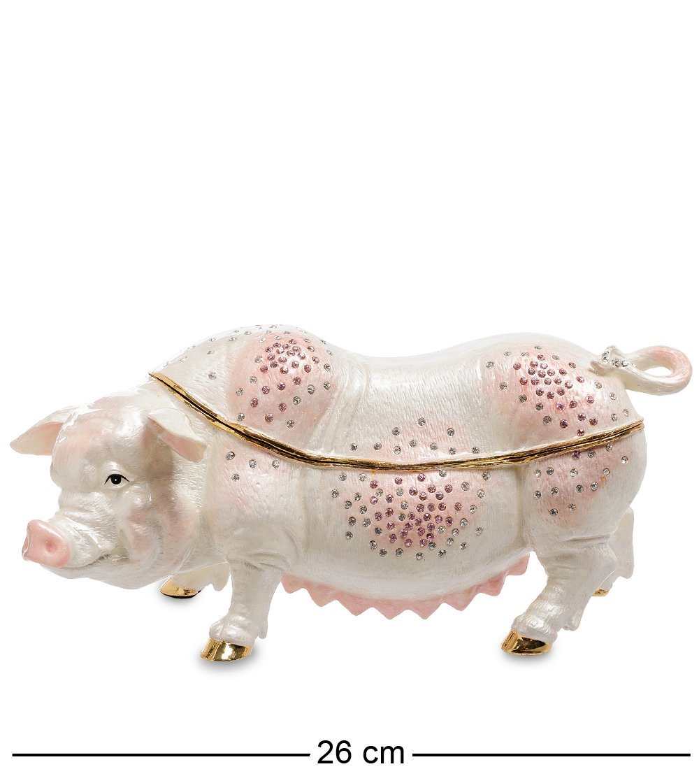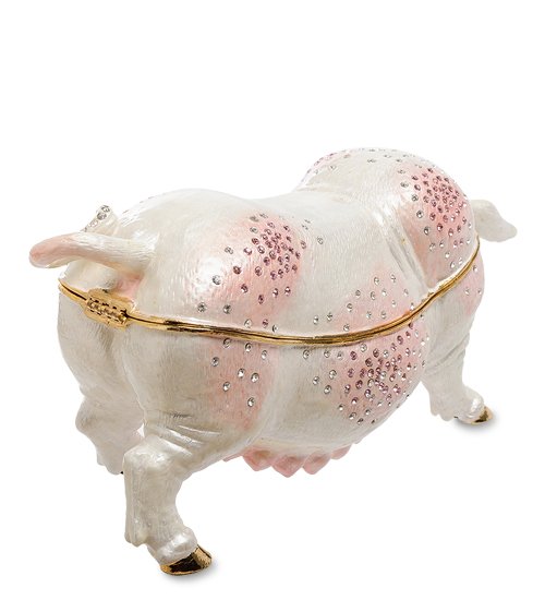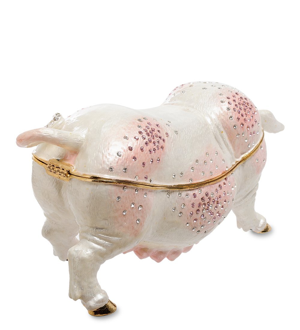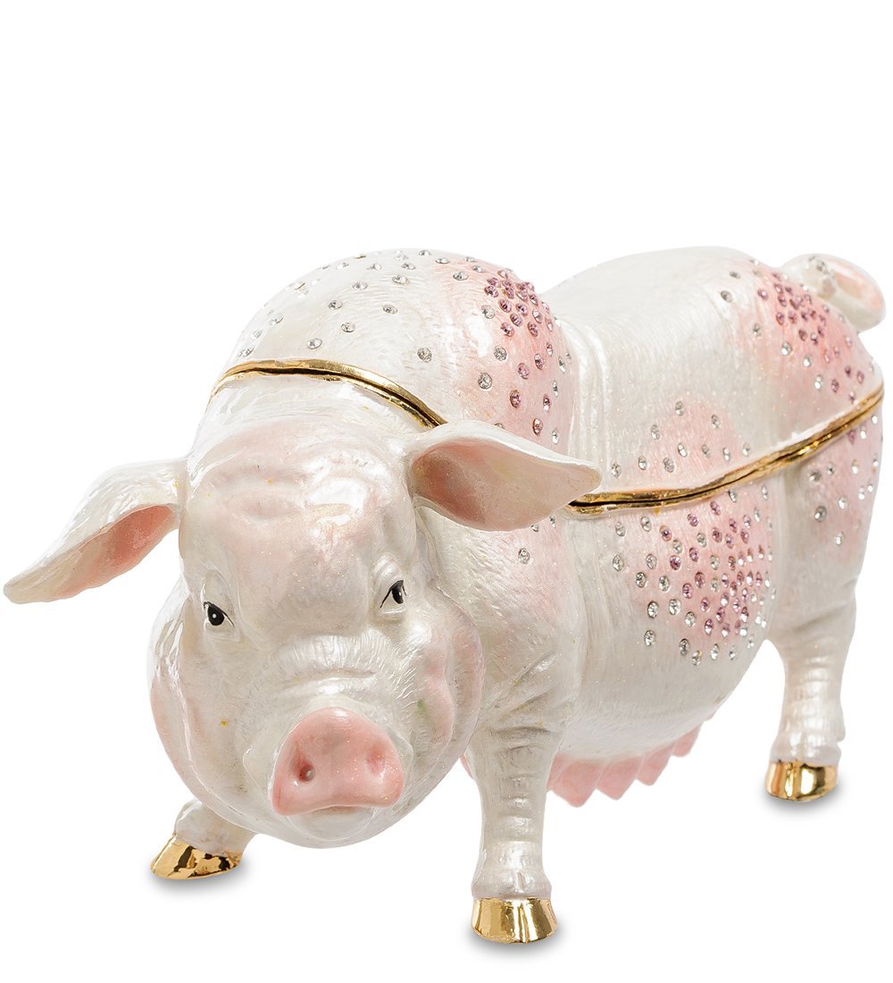 Прорези для монеток нет, потому что эта свинья мелочиться не привыкла. Ее спина откидывается, как крышка, открывая вместительную шкатулку, где можно хранить любые ценные и нужные вещи. Такая шкатулка может быть хорошим подарком с пожеланиями будущего богатства.