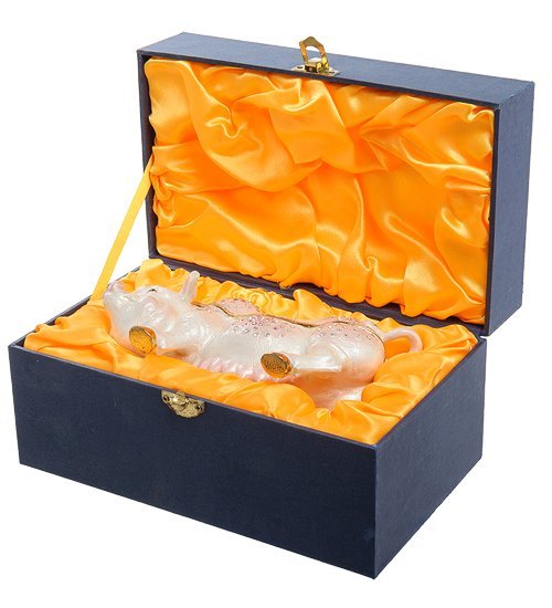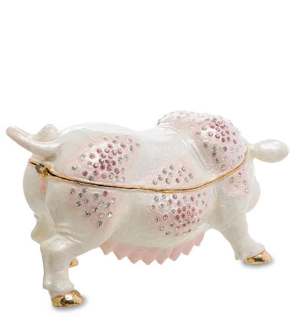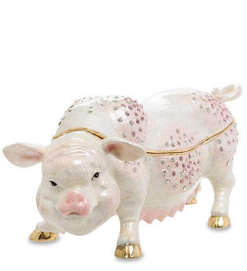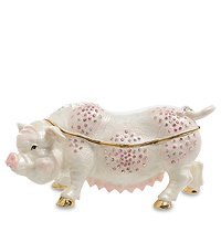 У этой свиньи явно полно поросят и она их активно кормит молоком. Но сейчас эта кормящая мама-свинка выступает в совершенно иной роли – внутри ее тела можно спрятать различные ценные вещи. Верхняя часть спины, обильно инкрустированная блестящими кристаллами, откидывается назад и становится понятно, что перед вами – оригинальная шкатулка для всевозможных украшений.