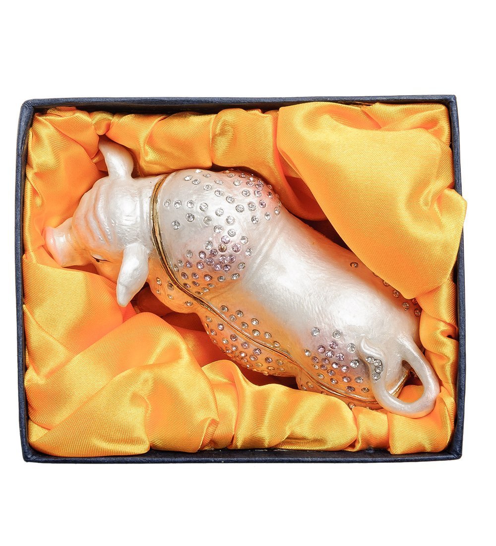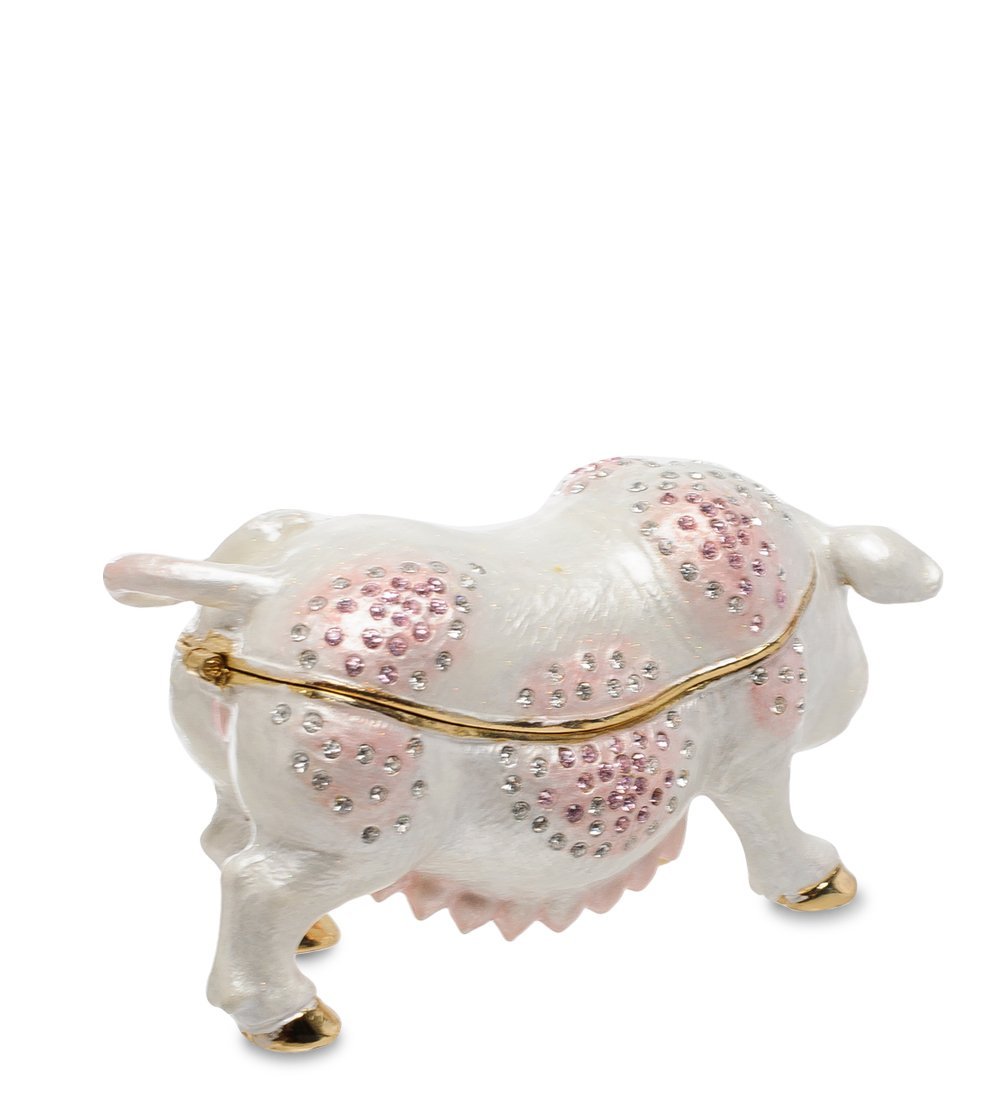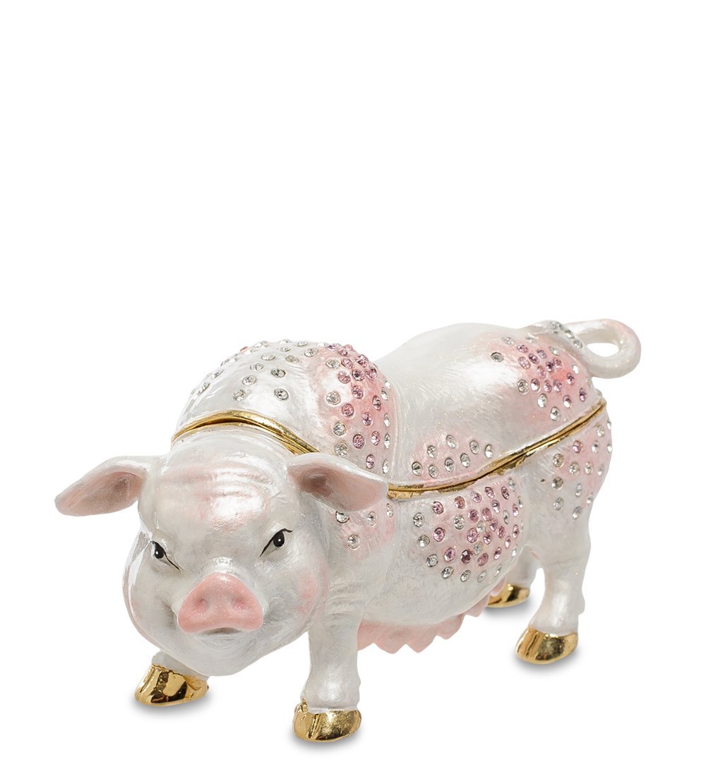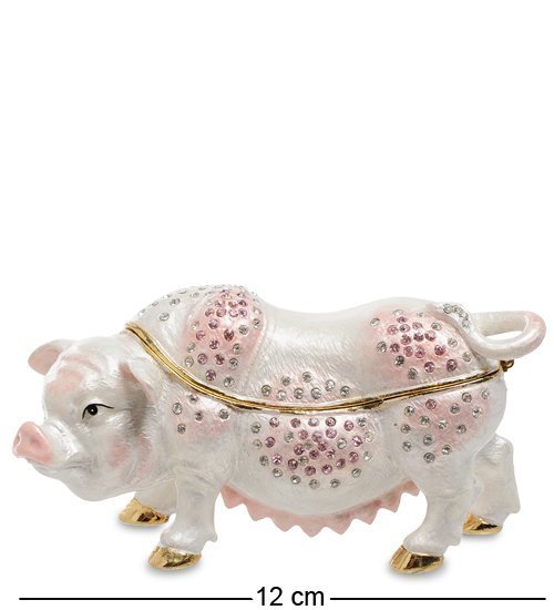 Но главная ценность спрятана – если приподнять спину, она откинется на петле и откроет внутреннюю полость – сразу станет понятно, что свинка – на самом деле шкатулочка. Вручить кому-нибудь такой подарок – вовсе не значит «подложить свинью» - этот домашнее животное издавна символизировало благополучие и достаток. Так что хранить в шкатулке можно только действительно ценные вещи!
