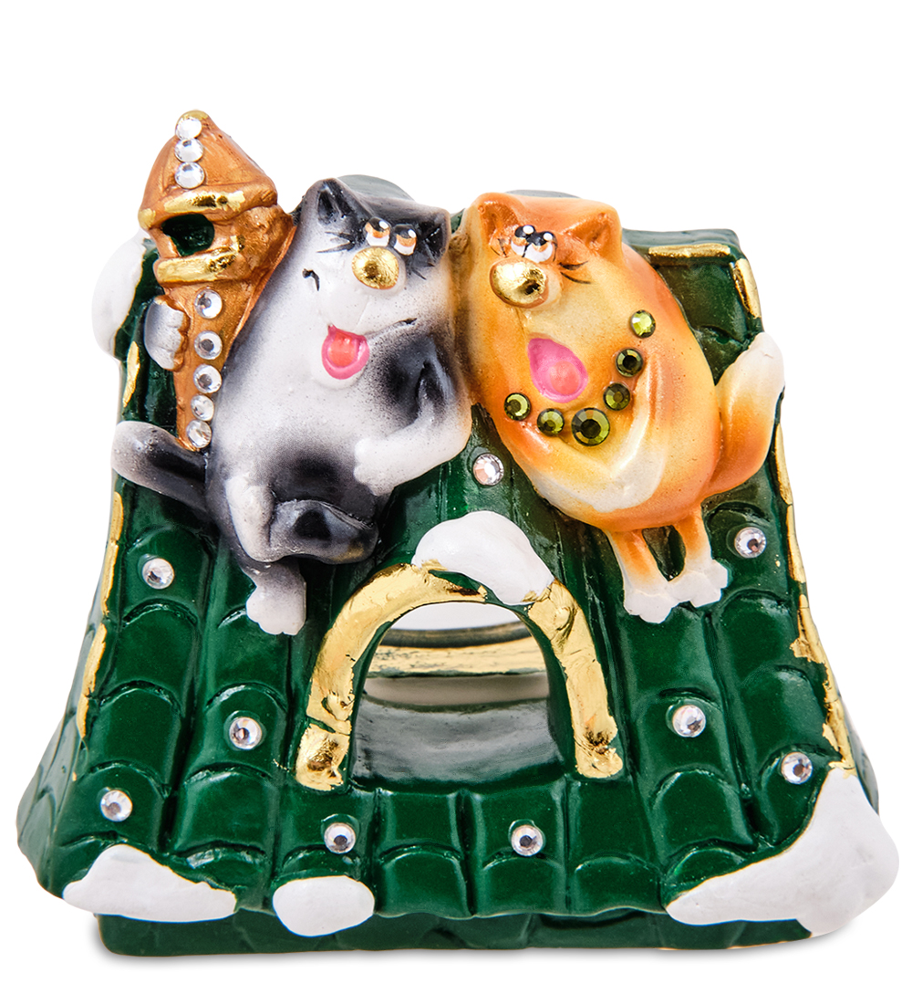 Подсвечник "Коты на крыше" из гипса изготовлен из экологически чистого материала и безопасен для детей. Ручная работа.