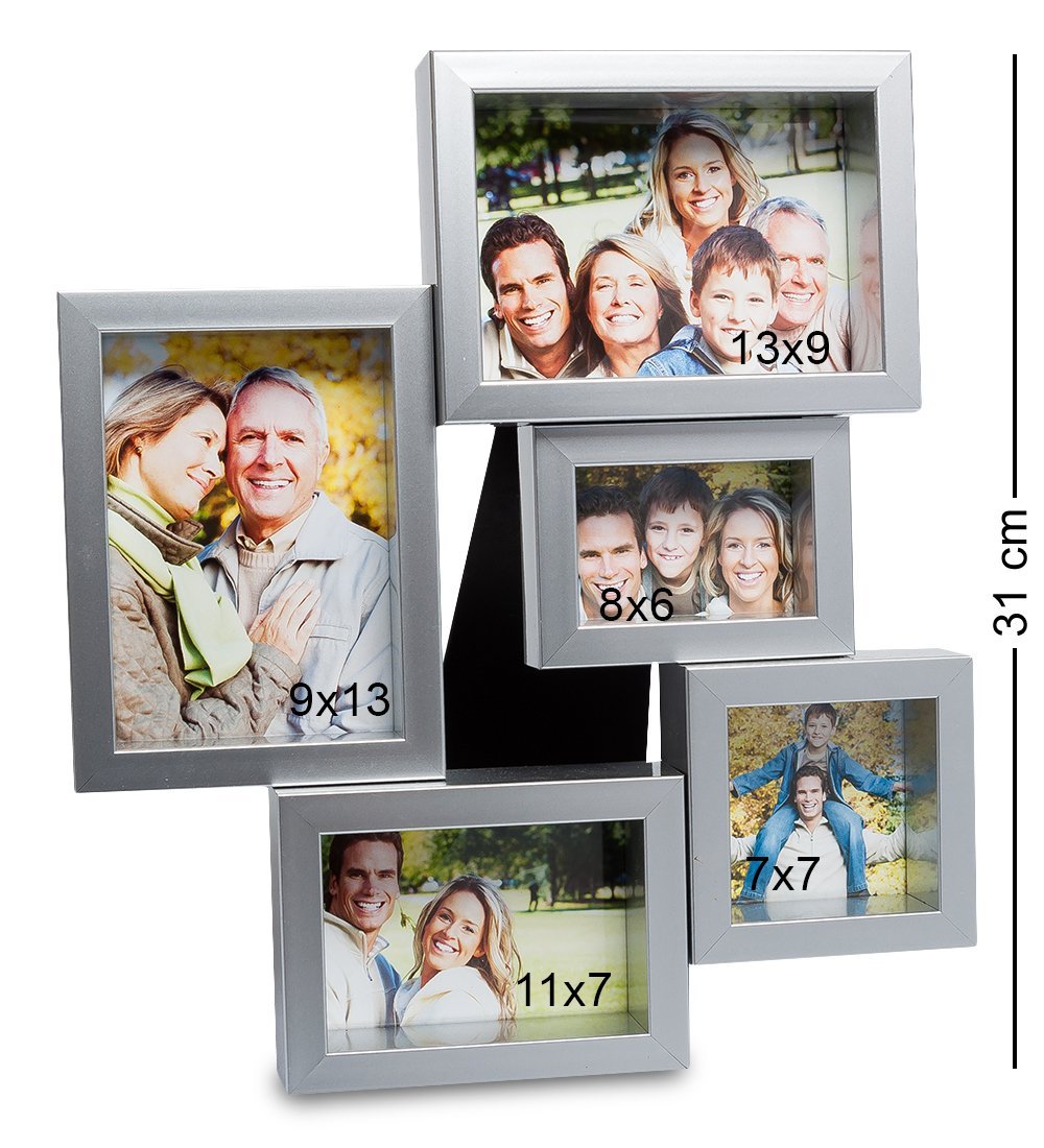 Конструкция из пяти фоторамок, позволяющая наглядно отобразить историю вашей семьи. Все пять пластиковых серебристых рамок связаны между собой, при этом они имеют различные размеры и соотношения сторон. Это позволяет вам подобрать фотографии самых разных форматов для размещения в рамках.