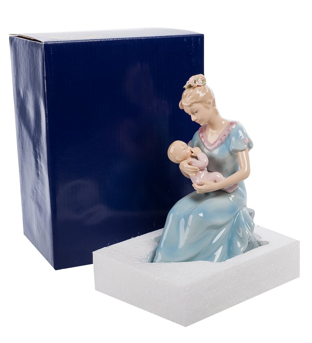 А тот заснул в нежных маминых руках – ведь это для него – самое спокойное и уютное место на свете. Подарите эту статуэтку будущей маме – скоро она и сама так же будет всматриваться в свое счастье, держа его на руках, самых нежных и самых сильных.