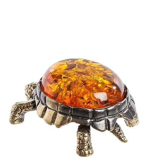 AM- 607 Фигурка «Черепаха» (латунь, янтарь)
