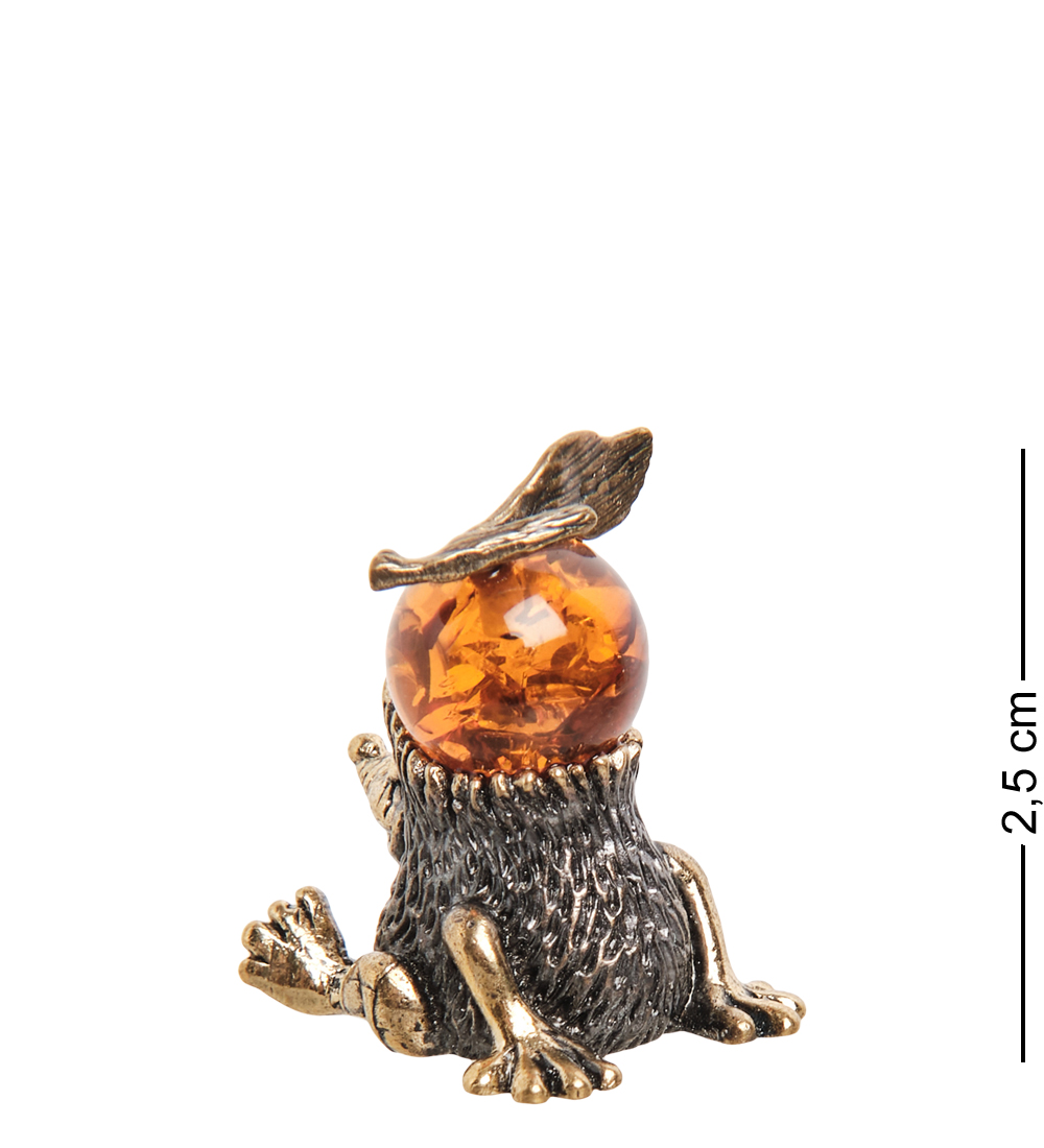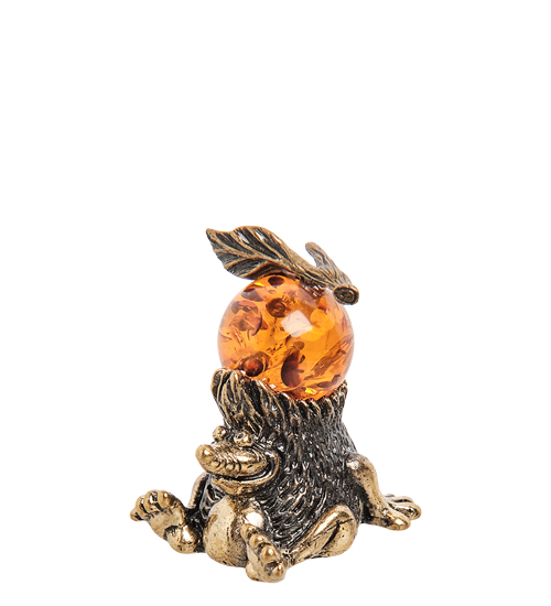 AM- 278 Фигурка «Еж с яблоком» (латунь, янтарь)
