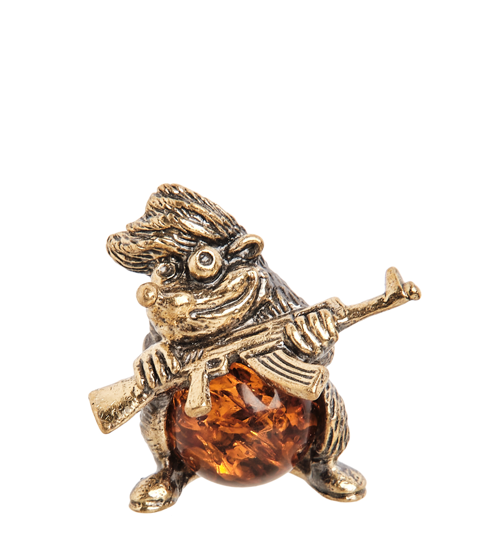 AM- 275 Фигурка «Еж с автоматом» (латунь, янтарь)