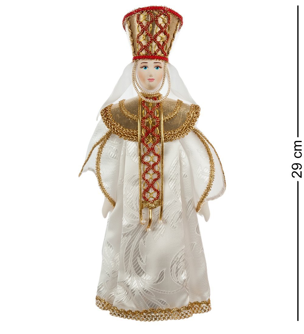 Кукла “Княжна Александра” представляет нашему взору образ древнерусской монаршей особы. Костюм куклы выполнен в лучших традициях русской культуры. Белоснежное платье подчеркивает важность, статус особы. По-королевски богато украшенный, расшитый золотом и бусинами костюм делает куклу шикарным предметом интерьера!