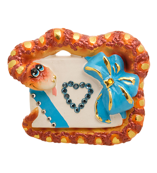 Магнит "Змея с открыткой" из гипса изготовлен из экологически чистого материала и безопасен для детей. Ручная работа.