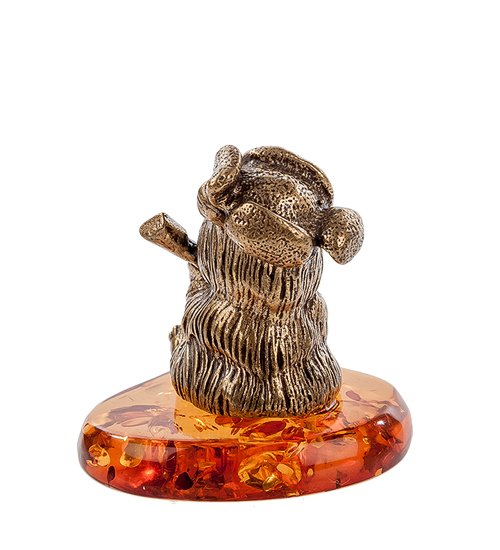 Медведь, сидящий на небольшом плоском островке из янтаря, действительно выглядит не совсем трезвым. Уши его шапки-ушанки, украшенной пятиконечной звездой, болтаются из стороны в сторону. У медведя слегка перекошен рот (возможно, сегодня ему пришлось выпить не одну, а целых три бутылки «пшеничной»), зато он полон сил и готов исполнять с надрывом народные песни хоть до самого утра.