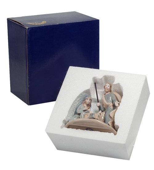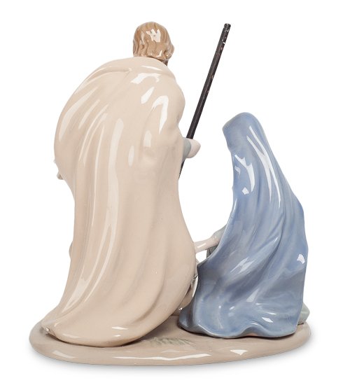 Классический евангельский сюжет – Рождество Христово. Перед счастливыми родителями лежит младенец, машет ручками и ножками. Обычный ребенок, думает отец. А мать смотрит на свое дитя со сложным чувством: она знает, что к его рождению имел отношение сам Господь. Им предстоит его вырастить, этого посланника небес на Землю, которому суждено совершить многие чудеса и многому научить род человеческий. Скромно одеты молодые родители: Рождество застало их в пути, в месте случайного ночлега. Подарить такую композицию верующему человеку можно к празднику Рождества – она станет центром внимания в комнате – даже тогда, когда праздник завершится.