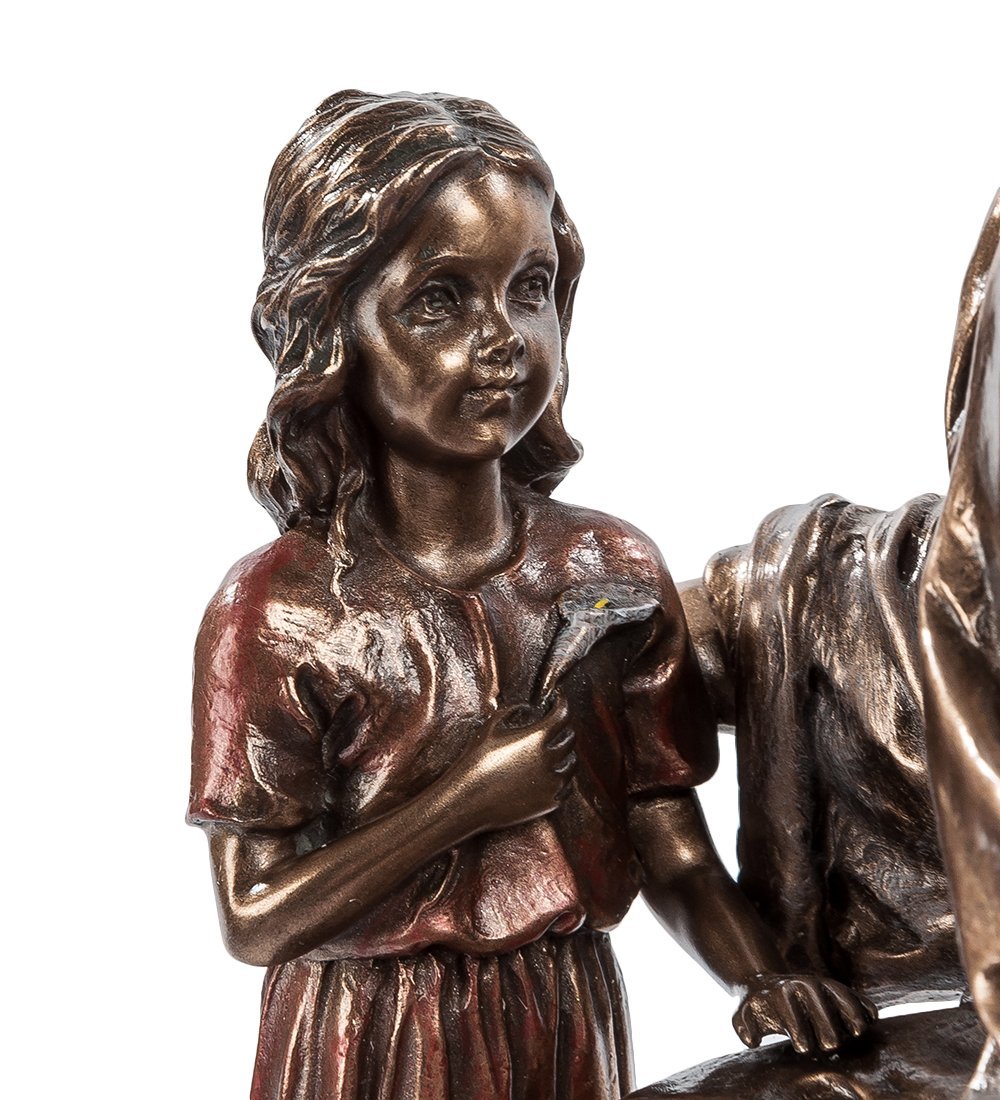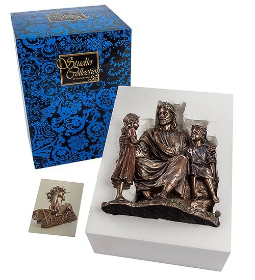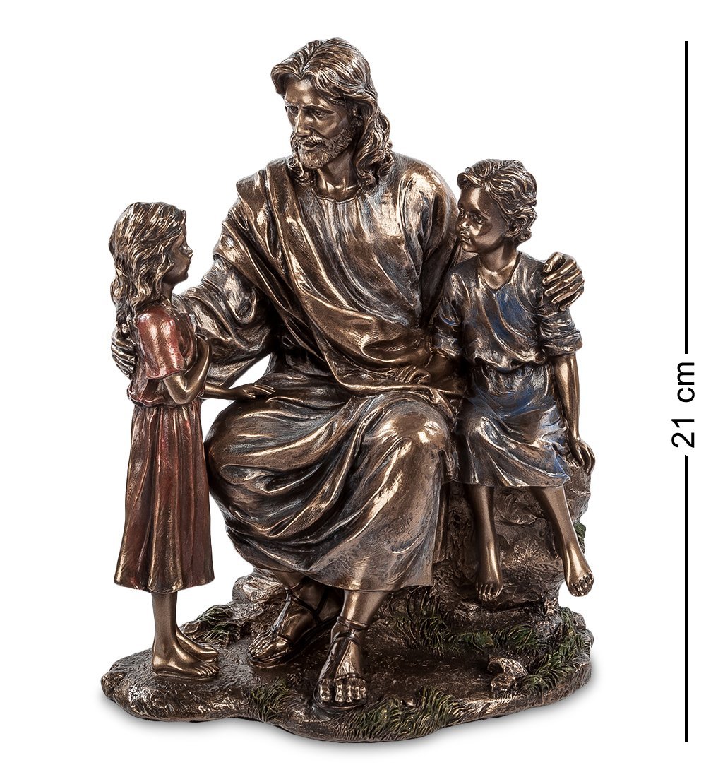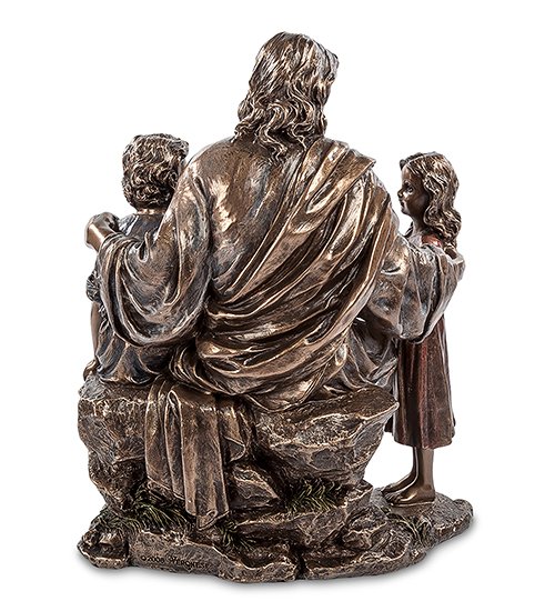 Трогательная по содержанию и безупречная в исполнении статуэтка «Проповедь Иисуса» напомнит тем, кто знаком с Писанием, что Иисус верил в людей и уделял особое внимание детям. Доверчивые, искренние дети чувствовали божественное тепло, исходящее от великого проповедника Истины, и, несмотря на запреты взрослых, приходили к нему за новой порцией мудрости и знаний. А тех, кто верит лишь в рациональное мышление, фигурка пленит отличной проработкой деталей и эмоциональной наполненностью.