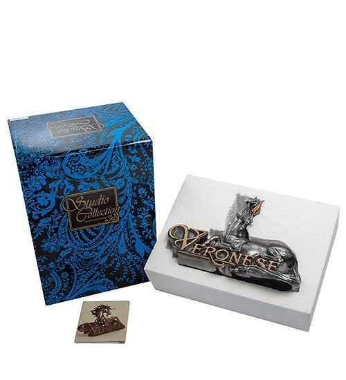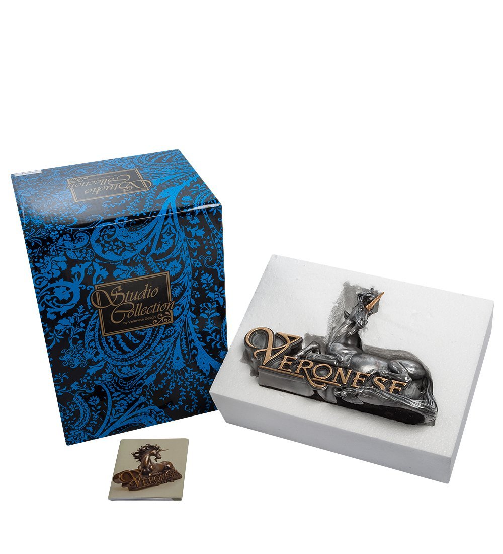 Статуэтка сделана из темного полистоуна, ее длина – 22 сантиметра. Рог мифологического существа покрыт позолотой, а само животное изображено в лежачей позе на подставке овальной формы. Фигурку «Единорог» можно подарить подростку, увлеченному миром фэнтези, или маленькой девочке, мечтающей о собственной живой лошадке.
