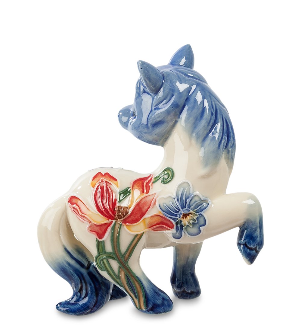 Маленькая фарфоровая лошадка, все тело которой украшено изображениями невероятно красивых цветов - что может быть прекрасней? Тонкая, искусная работа мастера чувствуется в каждом плавном изгибе, в каждой линии этой статуэтки. Нежные цвета в сочетании с рисунками на теле создают невероятную картину, которой можно любоваться часами.