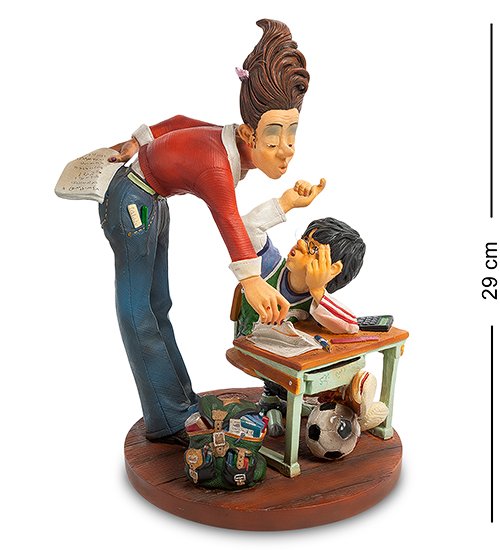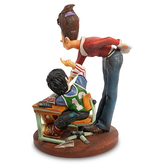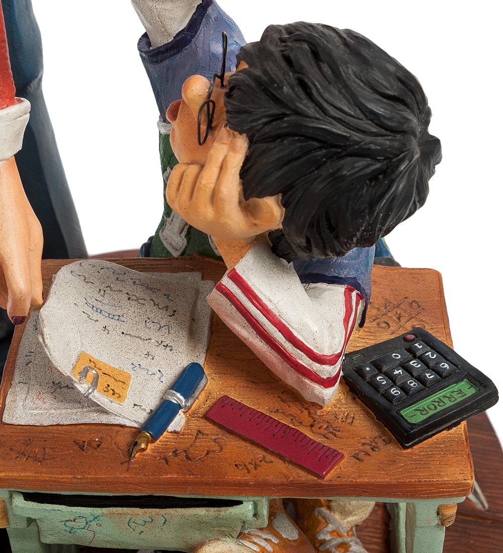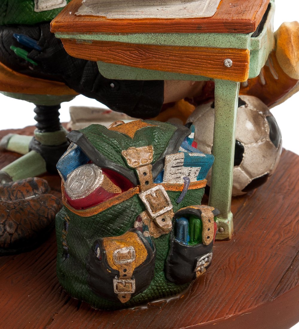 Редко, когда дети могут быть сразу усидчивыми — большинство хотят играть и веселиться. Статуэтка выполнена из полистоуна, краски безупречно нанесены, создавая полноценную картину взаимодействия ленивого ученика-футболиста и учителя математики. Отличный подарок ко «Дню знаний» или на «День учителя».