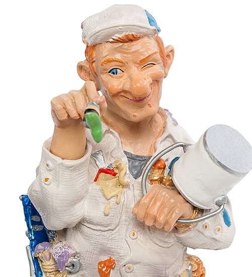 Необычная статуэтка «Маляр» дополнит дизайн шуточным элементом. Затейливый работник, окруженный несколькими баночками красок, - нотка смеха и веселья в интерьере. Изделие подчеркнет оригинальный вкус своего владельца. Станет оригинальным подарком на торжественные мероприятия. Вызовет неподдельную улыбку, поднимет настроение.