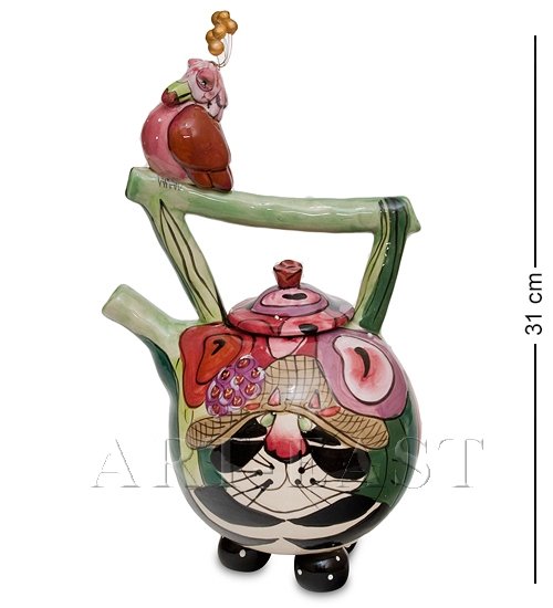 Заварочный чайник ''Кот Кланси и птичка''.