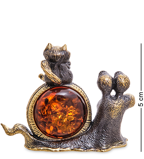 AM- 246 Фигурка «Улитка с котом» (латунь, янтарь)