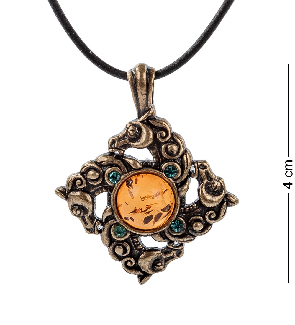 AM- 131 Подвеска «Лошадка - ромб» (латунь, янтарь)
