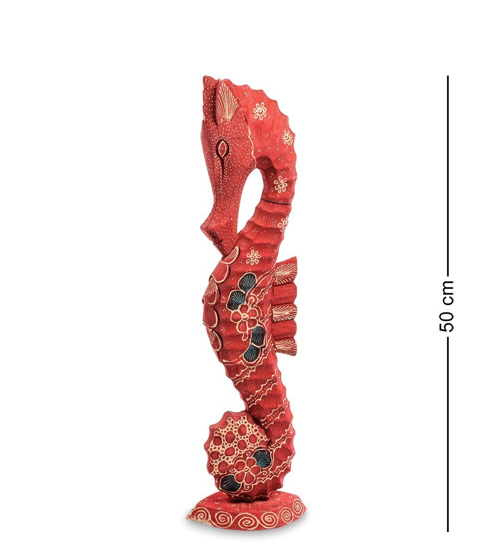 О необычных рыбах – морских коньках – все слышали, но мало кто видел это существо вблизи: в России морских коньков практически не встретить. У нас имеется набор из трех фигурок, изображающих этих необычных морских обитателей. Фигурки изготовлены из дерева и покрыты материей, раскрашенных по технологии батик. Высота самой большой статуэтки – 40 сантиметров, средняя имеет высоту 30, а самая маленькая – 20 сантиметров вместе с подставкой.