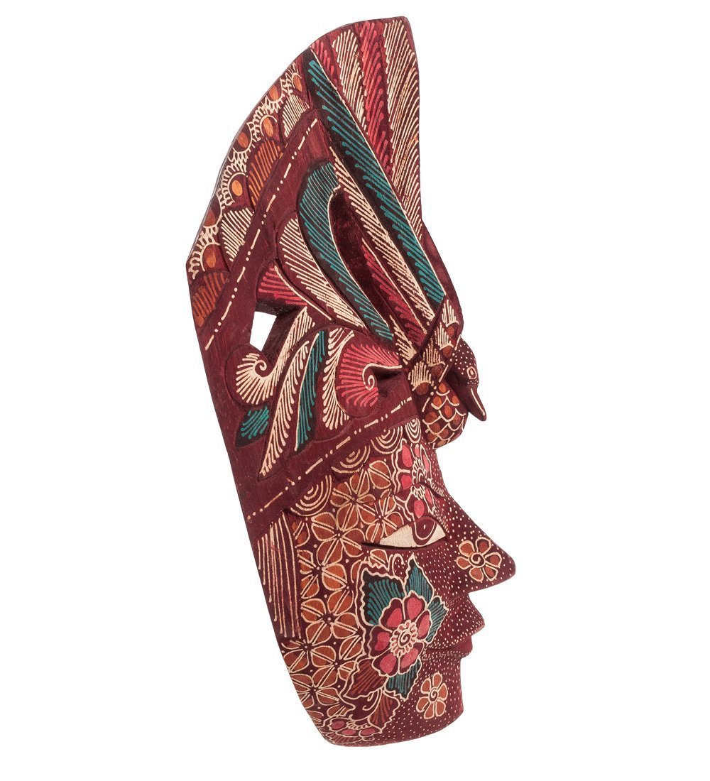 Одна из таких вещиц – маска «Птица Амадина», которую создали на острове Ява (Индонезия). Маска не предназначена для карнавалов и защиты от бактерий: ее функции чисто декоративные, ее место - на стене. Сам предмет не может не вызывать восхищения, несмотря на невозможность пользоваться маской по прямому назначению: она расписная, и расписана так, что захватывает дух.