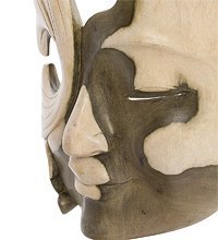 Бриония – многолетнее растение с цветами необычного вида: их лепестки и тычинки плотные и мохнатые, как кактус. Маска «Тропическая бриония» содержит название этого растения, но не слишком сильно напоминает его: белое дерево изображает улыбающееся человеческое лицо, оканчивающееся рисунком, похожим на листья растений, а левая верхняя часть лица заменена создателями на стебли и распускающийся пучок листьев.