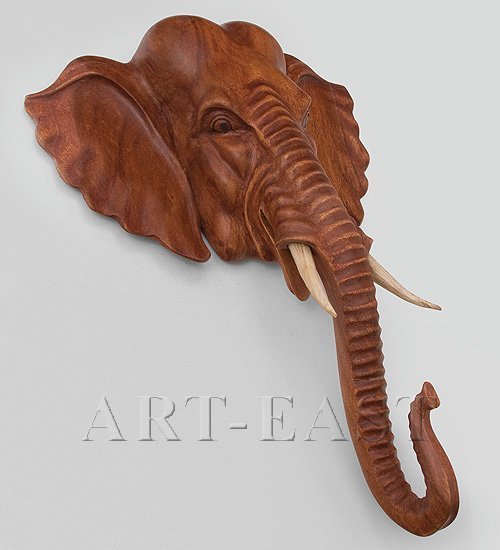 60-сантиметровое панно «Индийский слон» вырезано в Индонезии из дерева суар. Панно изображает голову слона в виде трофея; основная поверхность панно имеет специфический для суар темно-коричневый цвет, а клыки слона сделаны их колышков белого цвета.