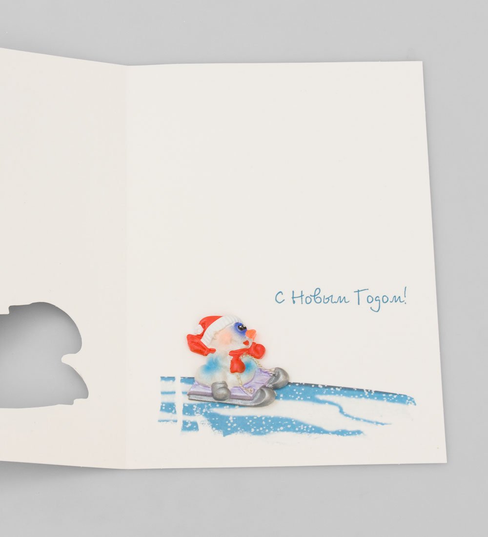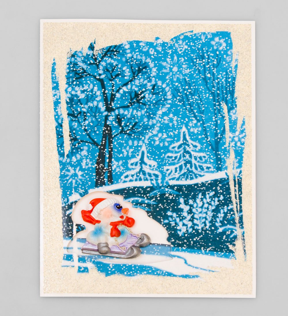 16058 Открытка «Снеговик на санках»