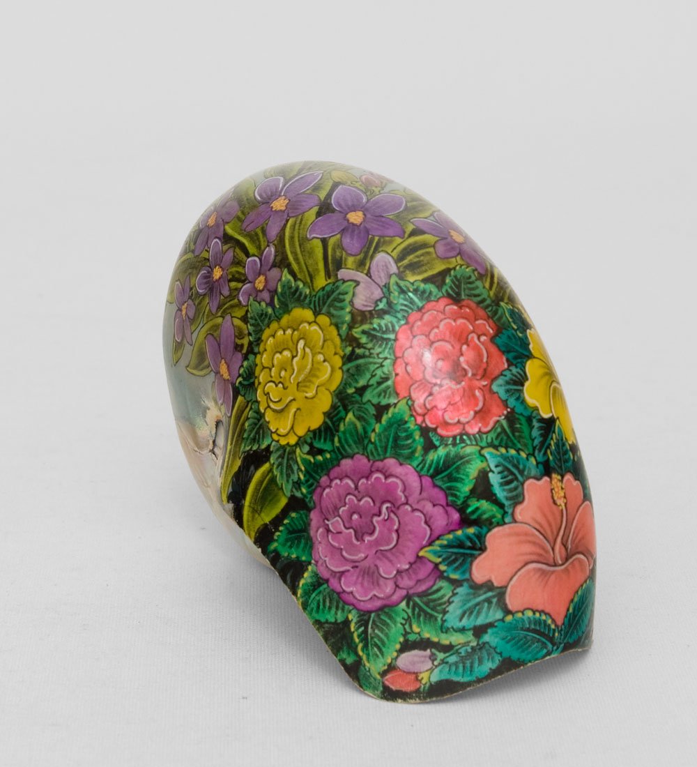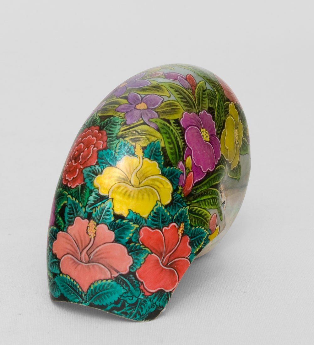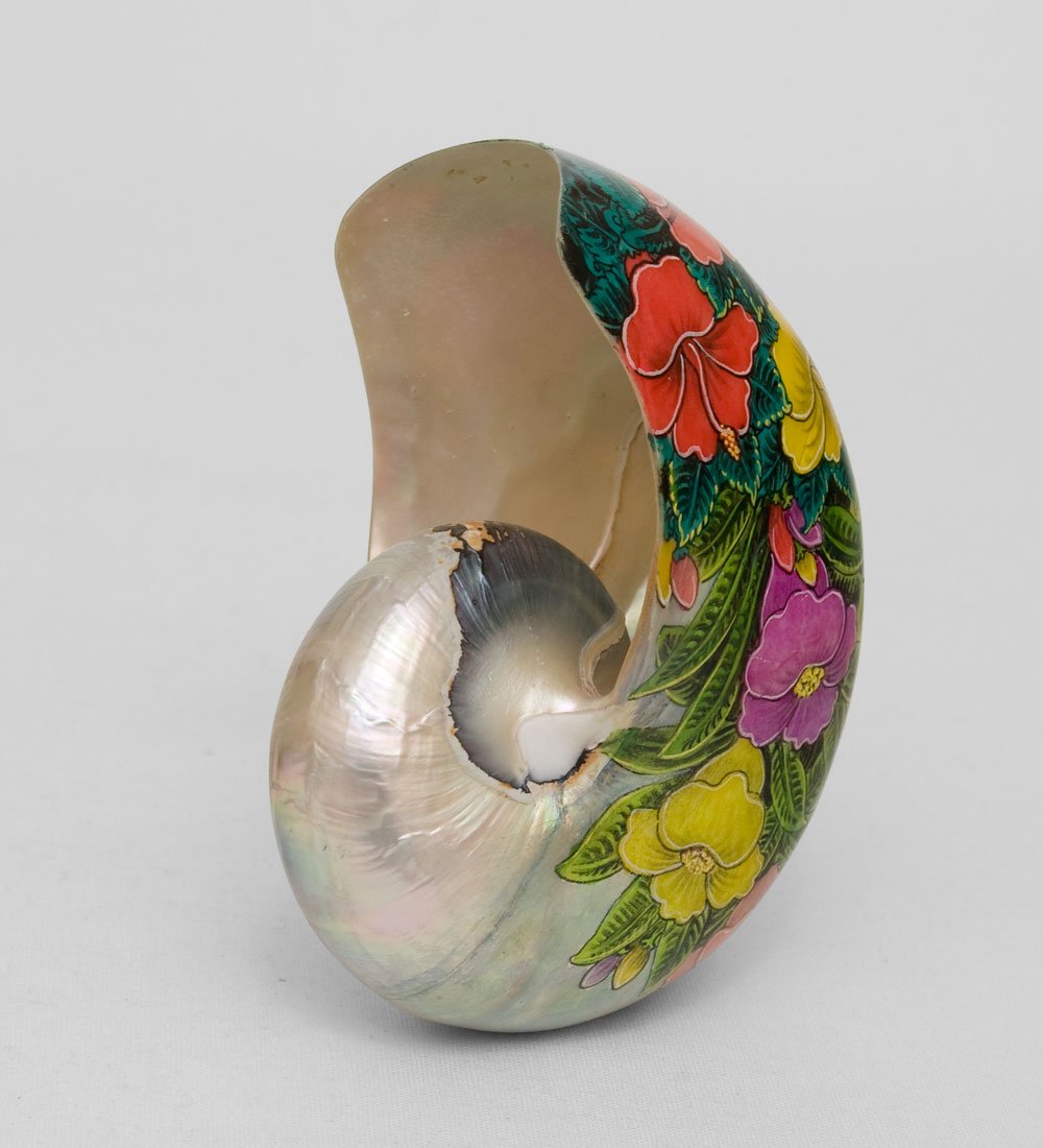 На ракушке изображен красивый, яркий, позитивный рисунок; она украшена изображениями живых цветов, которые можно встретить на острове. Внутренняя поверхность ракушки покрыта серебристой краской. Ракушку можно использовать таким же образом, как и расписное яйцо: поставить на поднос с небольшими статуэтками, под стекло в сервант или в книжный шкаф. Ракушку можно преподнести девочке, которая любит экзотические вещи и яркие цветы.