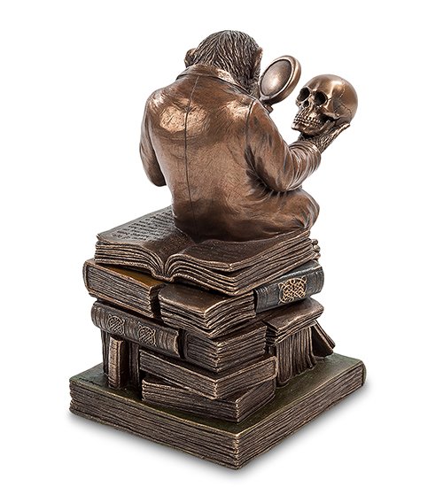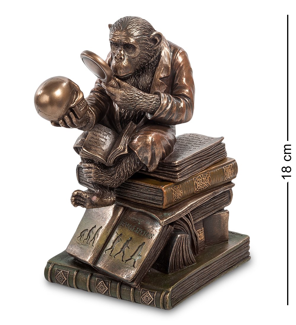 Шкатулка в виде скульптурной композиции "Обезьяна с черепом человека в руке" интересная, необычная и практичная вещь. Обезьяна восседает на стопке книг об эволюции Чарльза Дарвина, в руках держит человеческий череп. Над этой вещицей стоит задуматься.