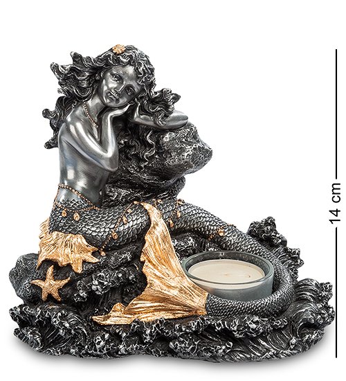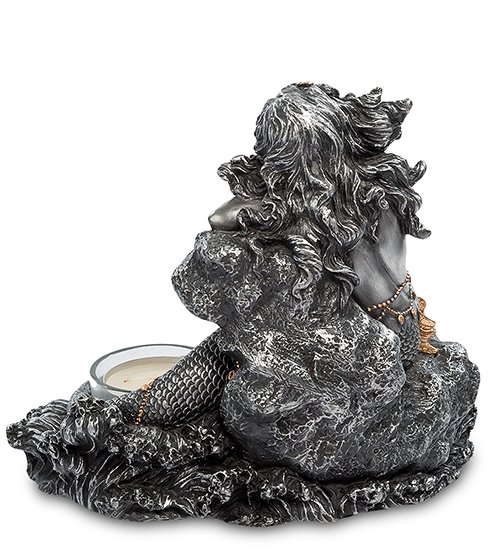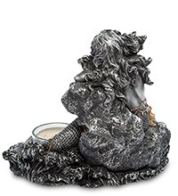 «Русалочка» ждет возвращения принца, грустит и смотрит в даль – на берег, где живут люди. У нее позолоченные плавники и кончик хвоста, в длинных распущенных волосах – золотая брошь. На шее золотая цепочка, на пояснице – золотой пояс, немного золота – на хвосте. Зачем влюбленной русалке столько позолоты? Наверное, чтобы принцу было проще ее разыскать... ведь прямо над ней будет гореть свеча.