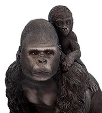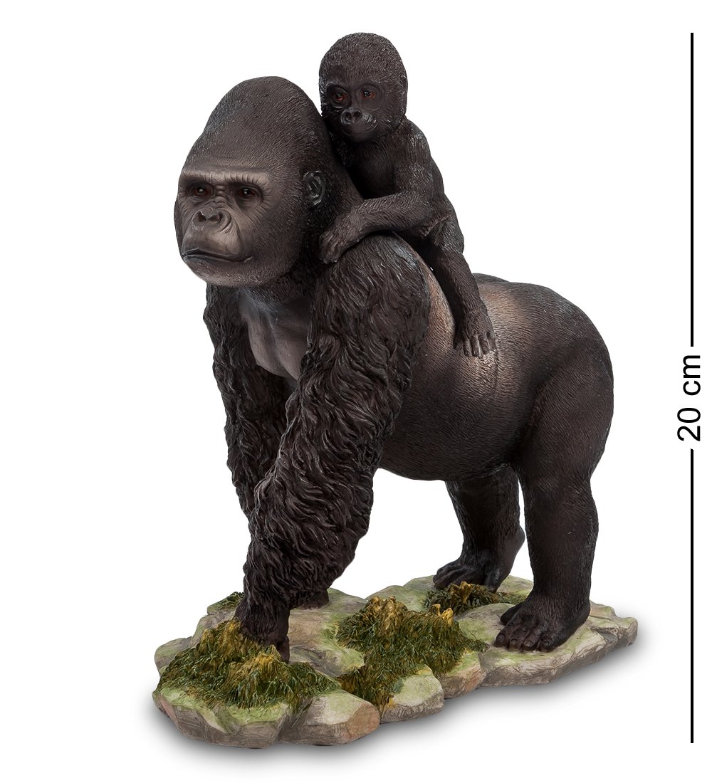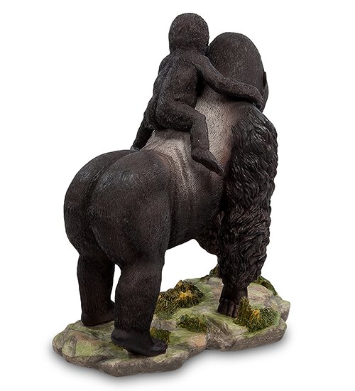 Статуэтка «Горилла с детенышем» станет стильным и оригинальным украшением вашего дома. В этой композиции изображена величественная и гордая горилла, на спине которой восседает маленький детеныш. Кажется, что еще мгновение назад животные блуждали по экзотическим тропикам, а сейчас они попали в наш мир и с интересом рассматривают его.