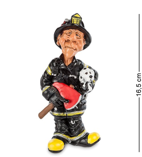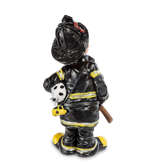 Статуэтка пожарника в полном боевом облачении, в огнестойком спецкостюме, в каске и при оружии – топор пожарный в руке. Взгляд спокойный, уверенный и немного гордый: пожарный – это тот, кто всех спасает от огня. Ну, и что, что сегодня только собачку вынес – все же живое существо. Надо будет – и людей спасать буду, да и спасал их уже не раз: не новичок в пожарном деле.