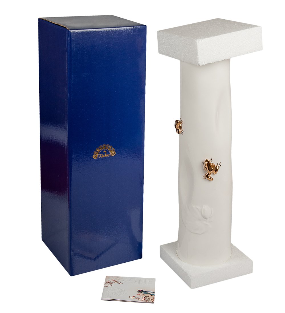 Ваза «Лягушки» изготовлена из самого качественного и прочного фарфора. Концепция изделия олицетворяет простоту и элегантность, ценность которых не померкнет даже через десятилетия. Высокая продолговатая ваза идеально подходит как для простых букетов, так и для пышных или нестандартных цветочных композиций.