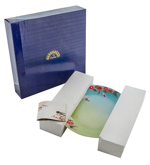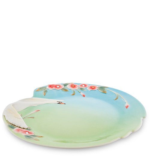 Большое блюдо, которое отлично подойдет для праздника большой компанией. На нем уместятся и маленькие бутерброды, и тарталетки, и… Но это не главное. Главное, что это блюдо может создать атмосферу праздника само по себе. Художники сумели воплотить в орнаменте изделия и нежность, и насыщенность красок, и непередаваемую гармонию, и плавные переходы от одного цвета к другому.