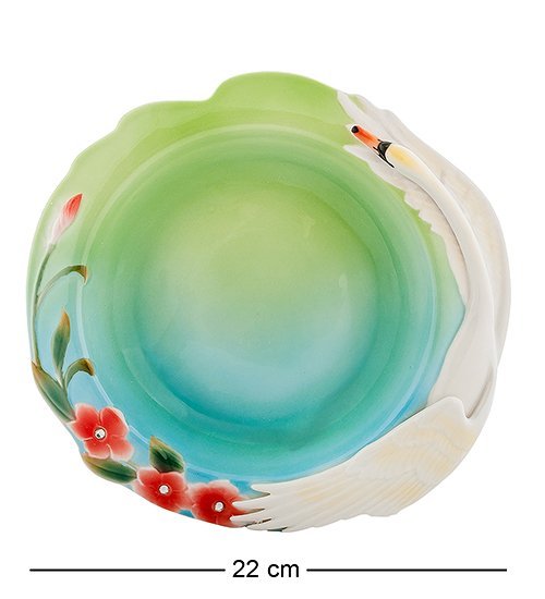 Тарелка «Лебеди» — удобная, глубокая, но это только обычные характеристики. Важнее другое — это изящное изделие, которое приносит в дом красоту и радость. Стыдно вести себя неряшливо, когда перед тобой такое произведение искусства, нельзя не сказать жене доброго слова, когда тебе подают обед в такой красоте.