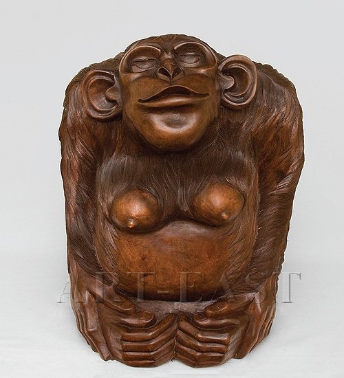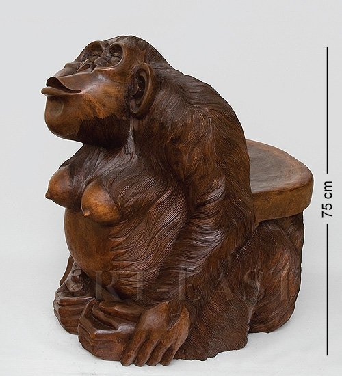 Эта фигура обезьяны не просто украшение, за спиной у нее расположился довольно удобный стул, оригинальная мебель для приходящих гостей или посетителей. Обезьяна же всем своим видом демонстрирует, что ей совершенно не тяжело держать человека на своей спине. Даже глаза прикрыла от удовольствия, и губы в трубочку вытянула.