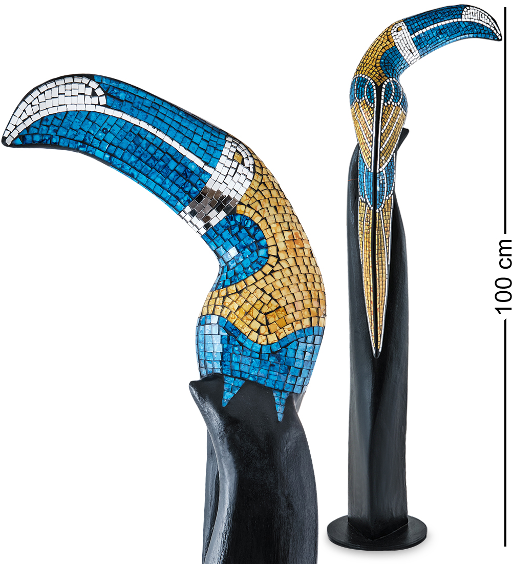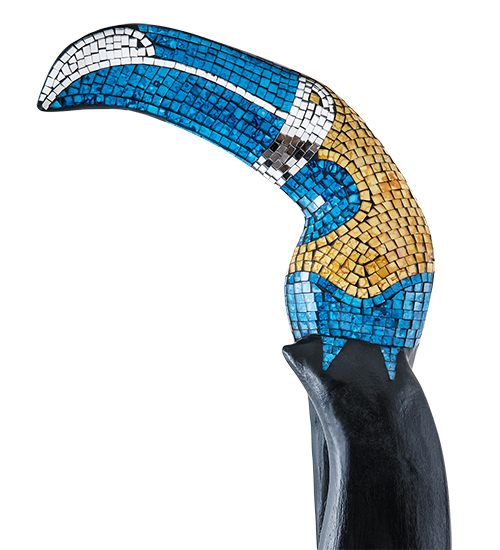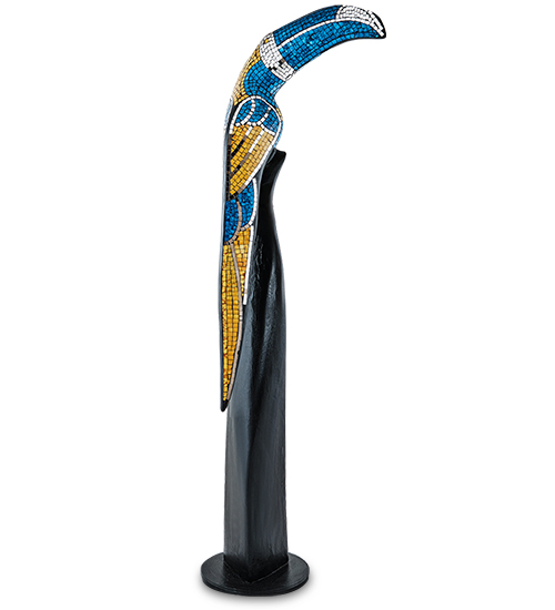 100-сантиметровый «Тукан», изготовленный в Индонезии, выглядит очень необычно. Небольшая птица имеет огромный желто-белый клюв, красивый узор на крыльях, и длинный, похожий на старинный меч, хвост. Тукан сидит на высокой подставке черного цвета; его деревянная поверхность покрыта мозаикой из разноцветных стекол.