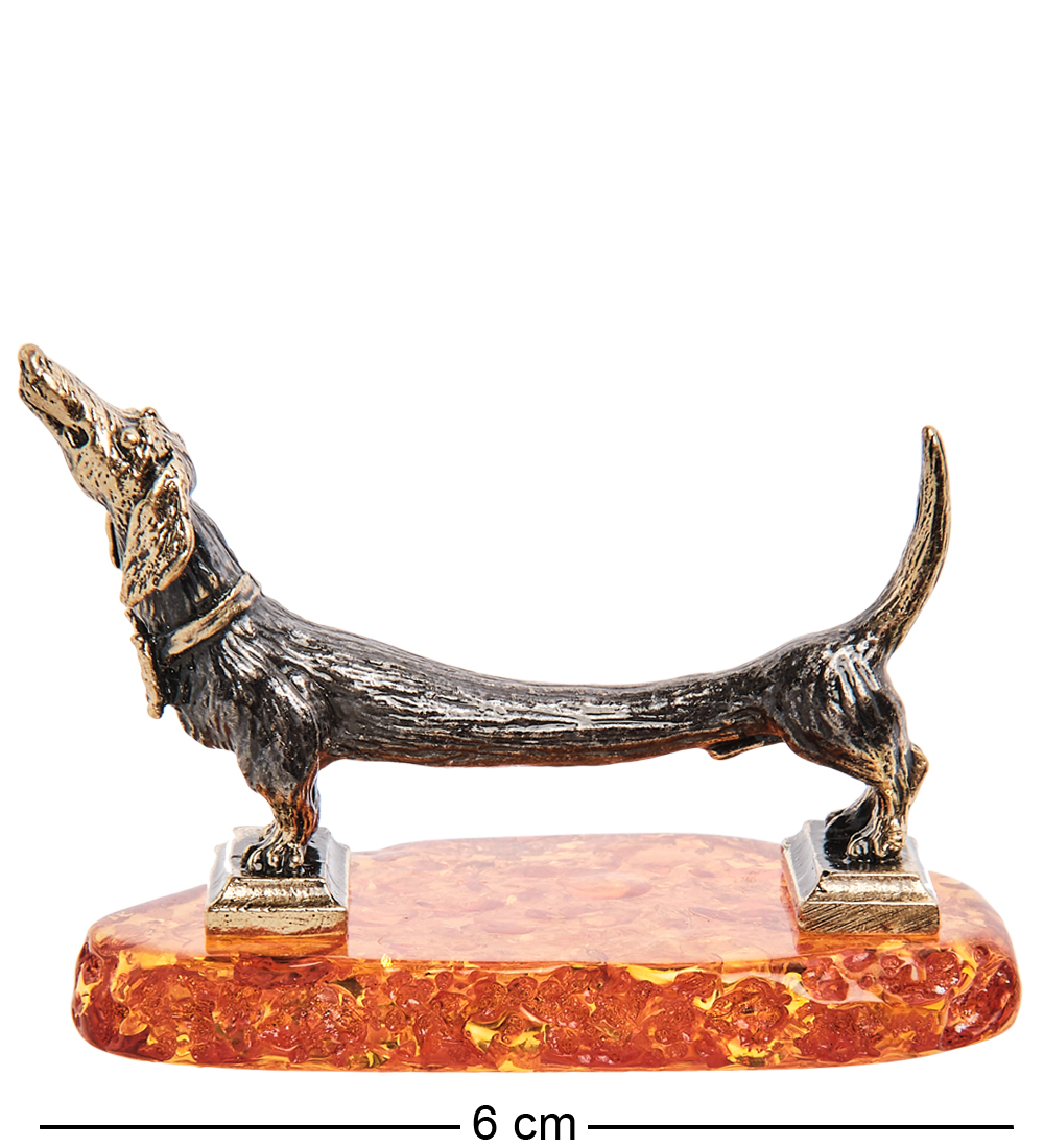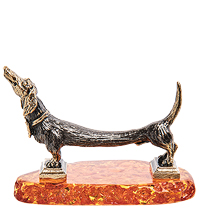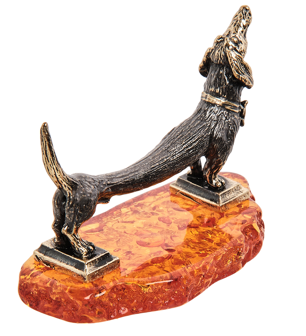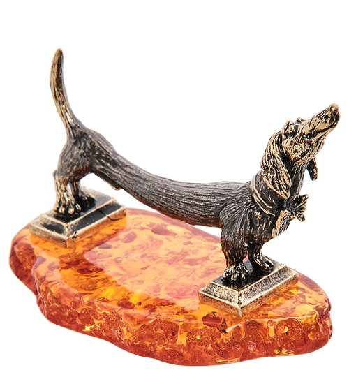 AM- 572 Фигурка «Такса Электричка» (латунь, янтарь)