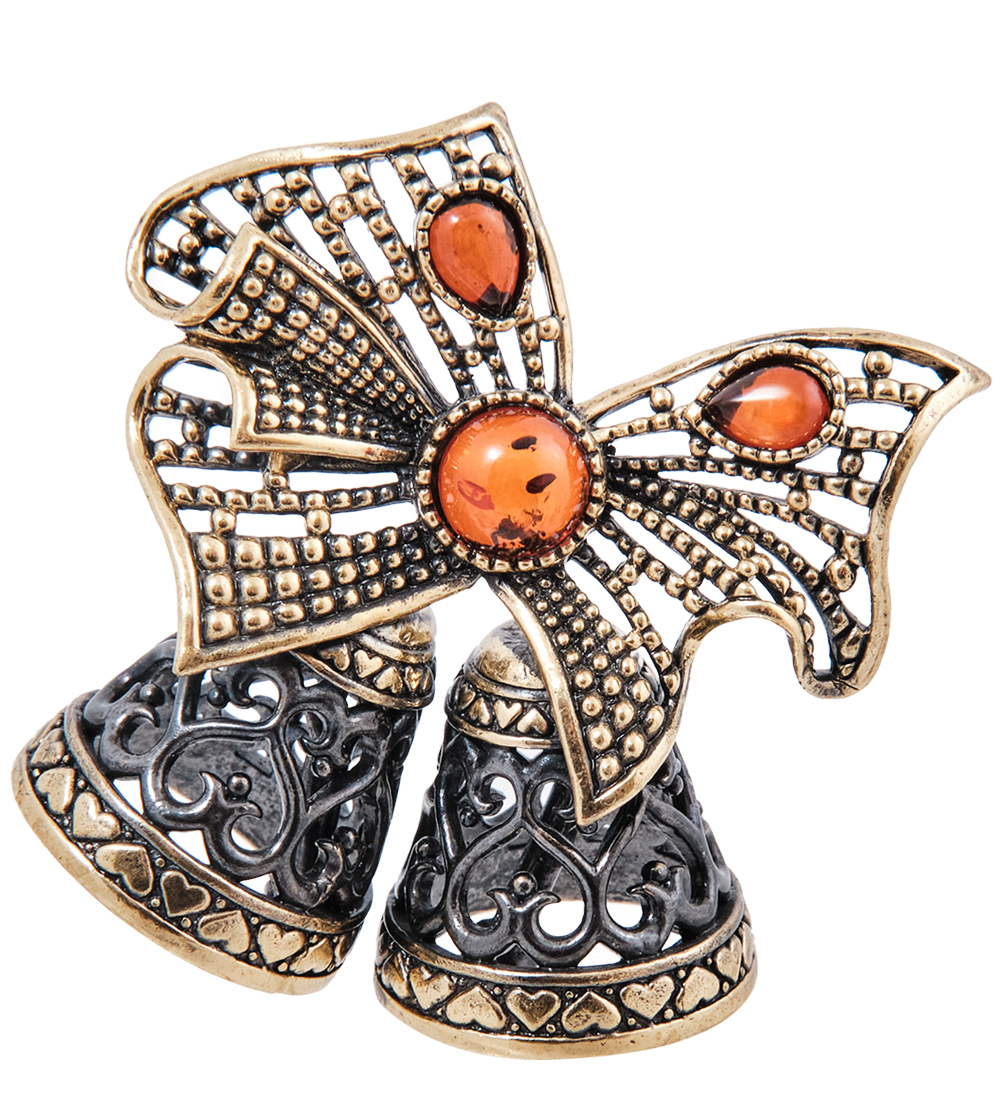 AM- 583 Колокольчик «Бантик» (латунь, янтарь)