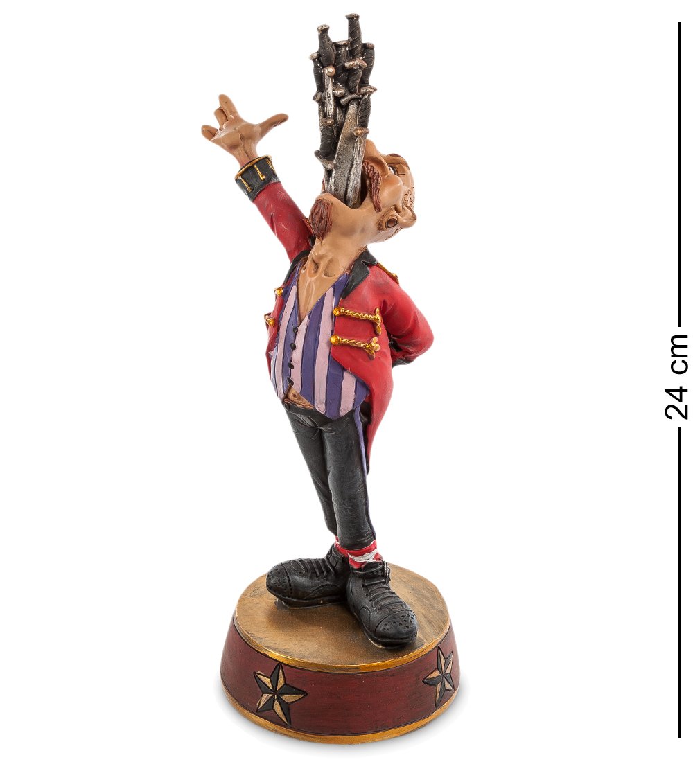 Кто знает, каких сил требует этот трюк от шпагоглотателя, но у него еще хватает сил на торжествующий жест: смотрите – этого вы еще никогда не видели! Подарить фигурку шпагоглотателя можно не только артисту цирка – это, все же, редкая специальность, а, например, человеку, отличающемуся непомерным аппетитом заодно с чувством юмора.