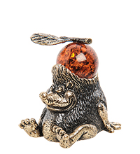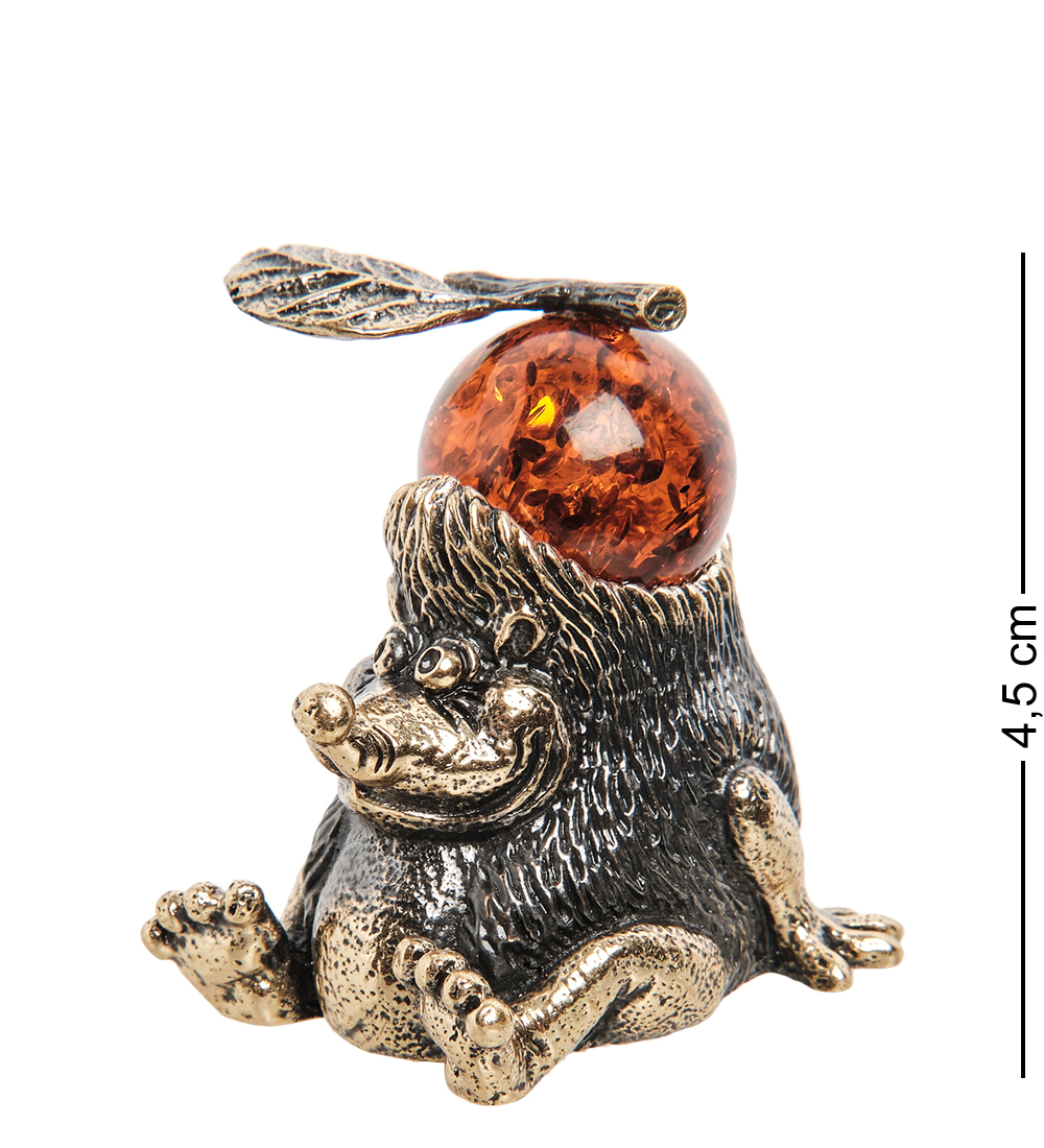 Статуэтка «Еж», сделанная из латуни и янтаря, может украсить любую комнату, но лучше всего будет смотреться на кухне, так как лесной обитатель волей создателя фигурки изображен не в одиночестве, а в компании большого оранжевого янтарного яблока.