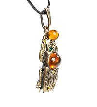 AM- 120 Подвеска «Жук - Скарабей» (латунь, янтарь)