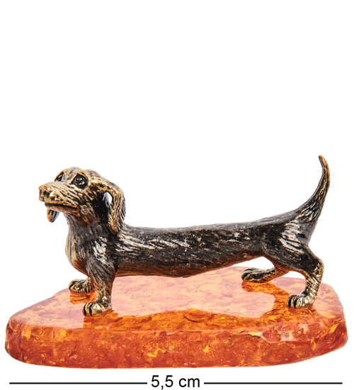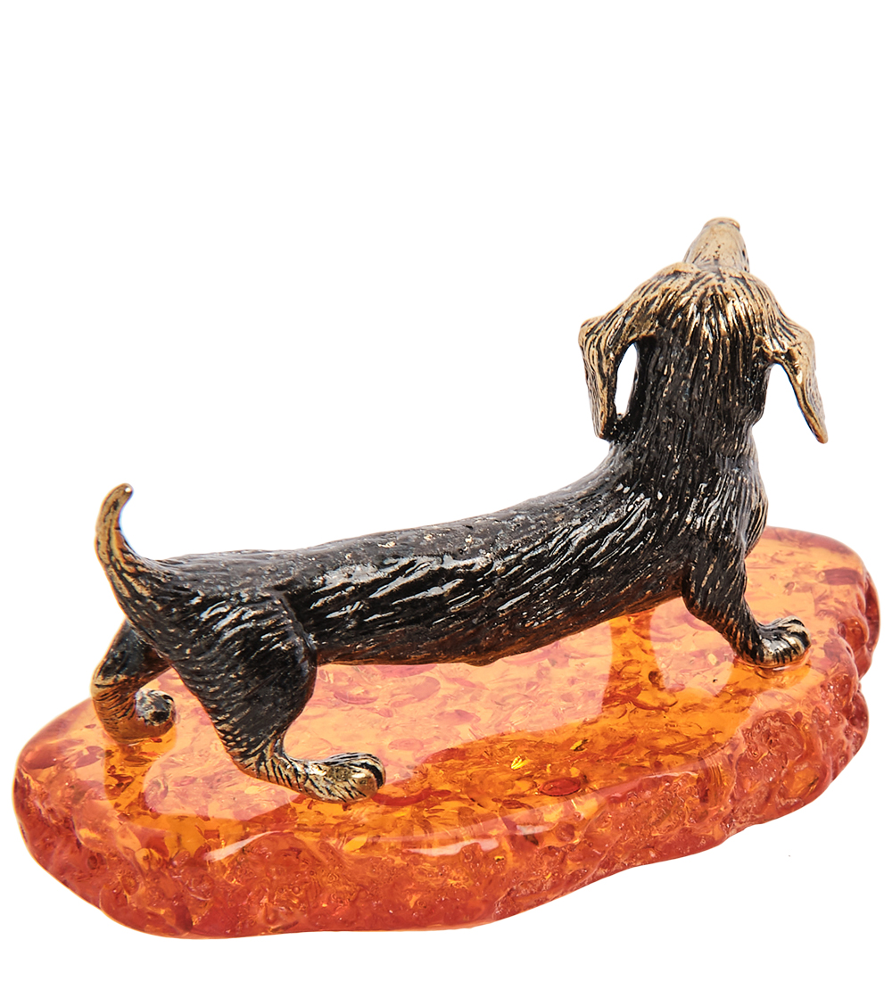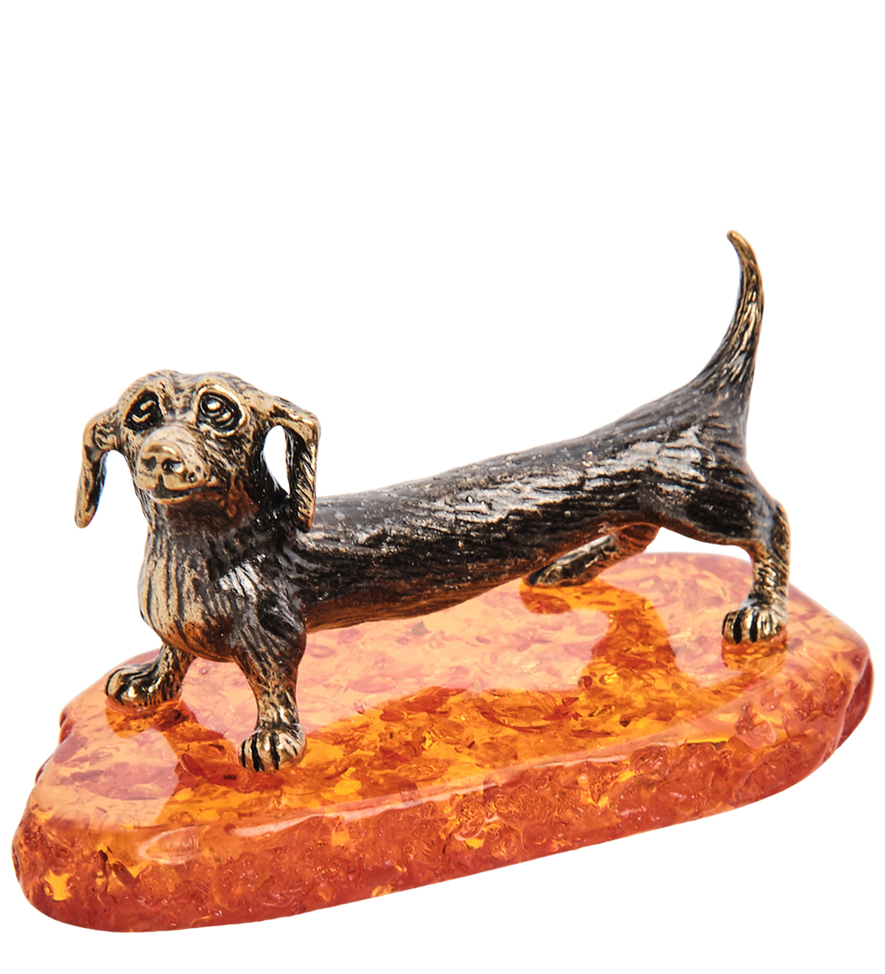 AM- 303 Фигурка «Такса Паро» (латунь, янтарь)